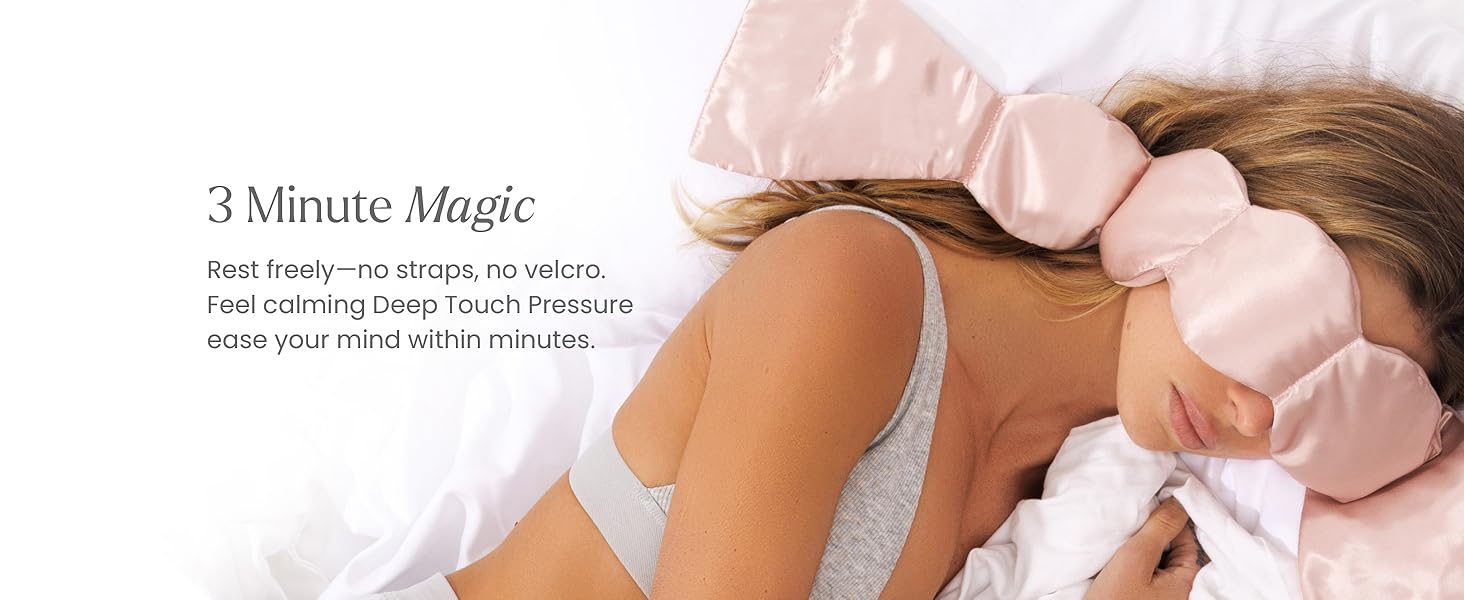 The ADOURA mask distributes gentle, even pressure across the head (a concept from deep-touch pressure therapy), providing both blackout and calming weight.